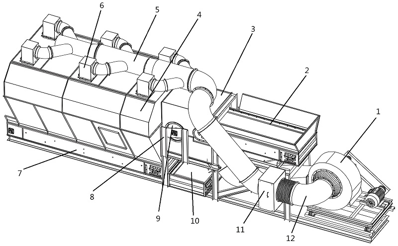 First, the airflow generation step. The equipment uses a fan (the core power component) to generate a controllable airflow. The fan type is adapted according to the needs (e.g., centrifugal fan, axial flow fan). The airflow is then transformed into a stable, directional airflow field through the air duct system. The air speed and pressure can be adjusted through variable frequency speed regulation or dampers to meet different material separation requirements.